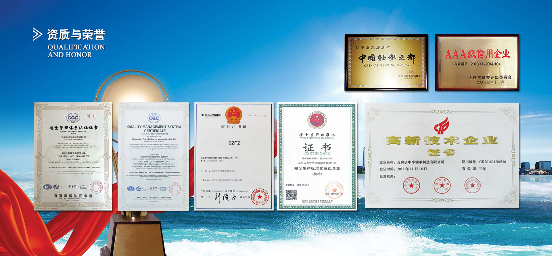 瓦房店中孚軸承制造有限公司專(zhuān)業(yè)生產(chǎn)礦用汽車(chē)軸承和配件,擁有獨(dú)立礦用汽車(chē)軸承設(shè)計(jì)和產(chǎn)品研制部門(mén),具備開(kāi)發(fā)礦用汽車(chē)軸承的能力,保證軸承的使用壽命和高穩(wěn)定性,并建立了完整的質(zhì)量體系,已通過(guò)ISO9001:2015質(zhì)量管理體系認(rèn)證。